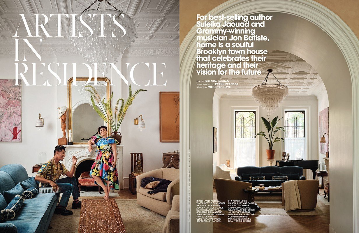This beautiful house in Brooklyn brings together their unique styles (his from New Orleans and hers from Europe/Tunisia)….all orchestrated by Suleika’s close friend and interior designer Hallie Goodman, who seems to channel their personalities flawlessly. (BTW, I’m in love with Hallie’s approach to design - you must check out her portfolio! Upcycled pieces from her brilliant thrifting, keen eye for negative space so it’s all very breathable, color as an instrument to inject life exactly where it’s needed - not overpowering, and PERSONAL meaningful talismen throughout each space. Talk about harmony!)