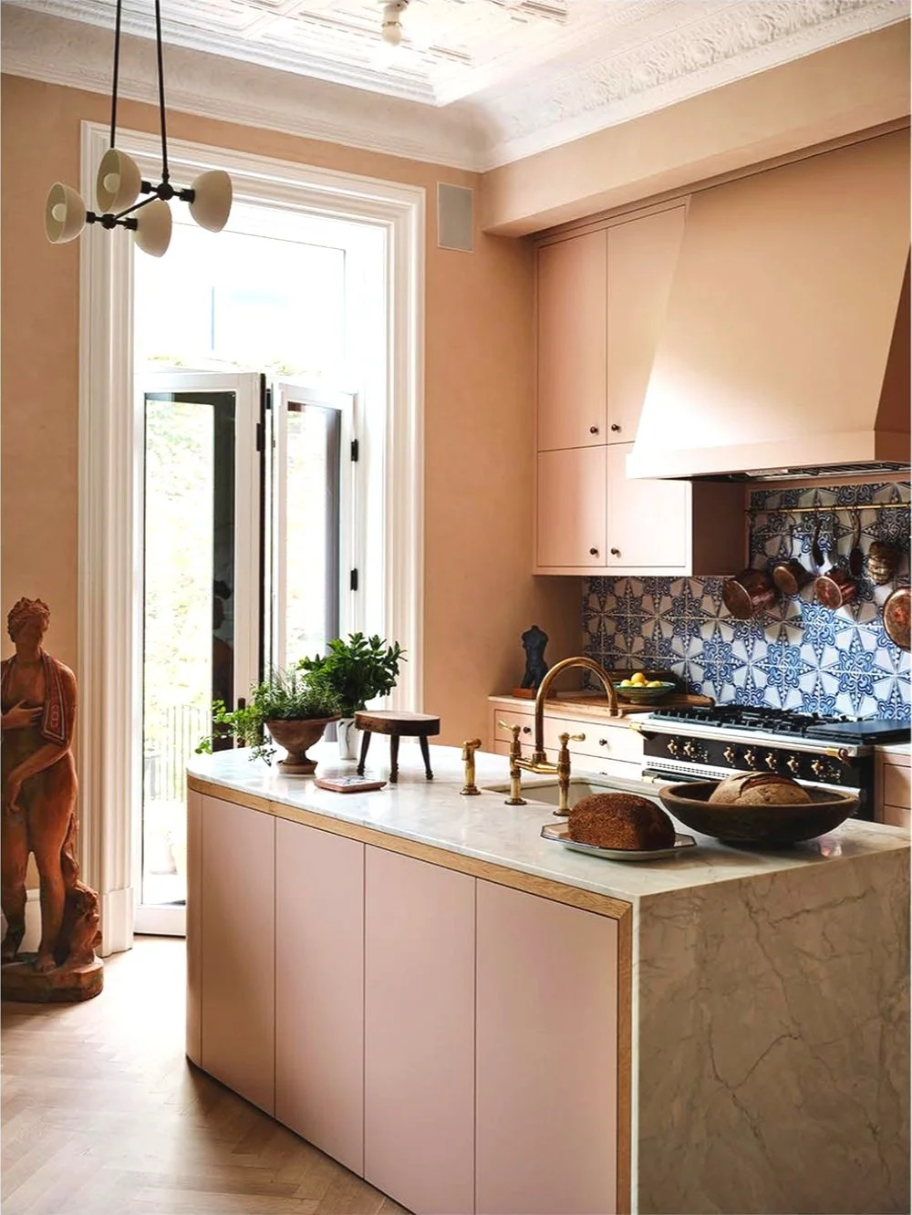 The kitchen island is really more of a sculpture in my mind - color, pattern, marble, wood, curves. Lovely!!!
