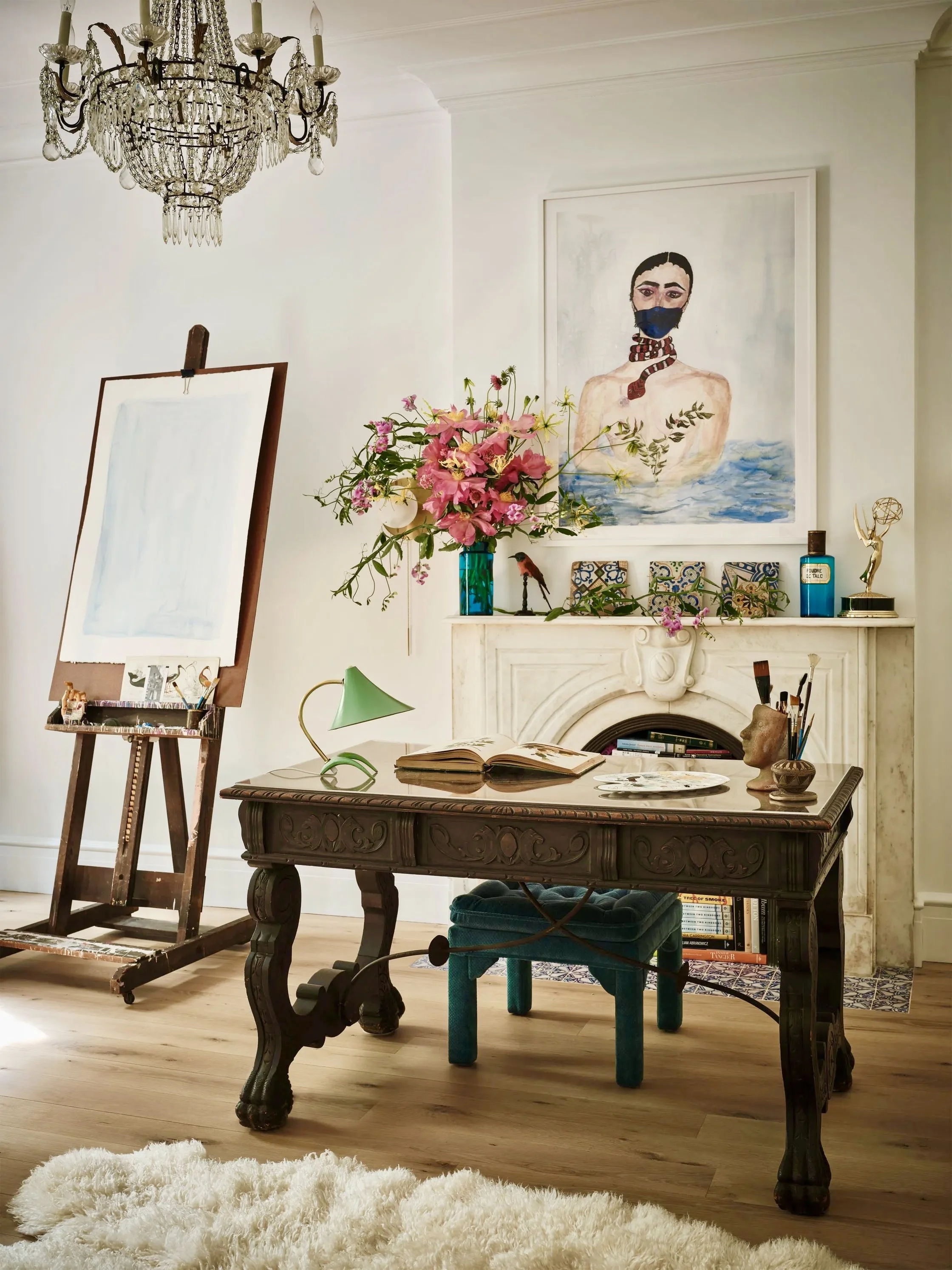 And then, just when I thought Suleika couldn’t possibly get ANY cooler - gorgeous, funny, and a writer turned painter - I learned via AD that she writes on Joan Didion’s former desk, which her husband Jon bought for her in that famous auction. I was obsesssssssed with Didion from the first time I read Slouching Towards Bethlehem at age 14 and subsequently wrote my college essay about her work. I can only imagine the spirit of that desk and all the incisive language that was typed on it. Goosebumps!
